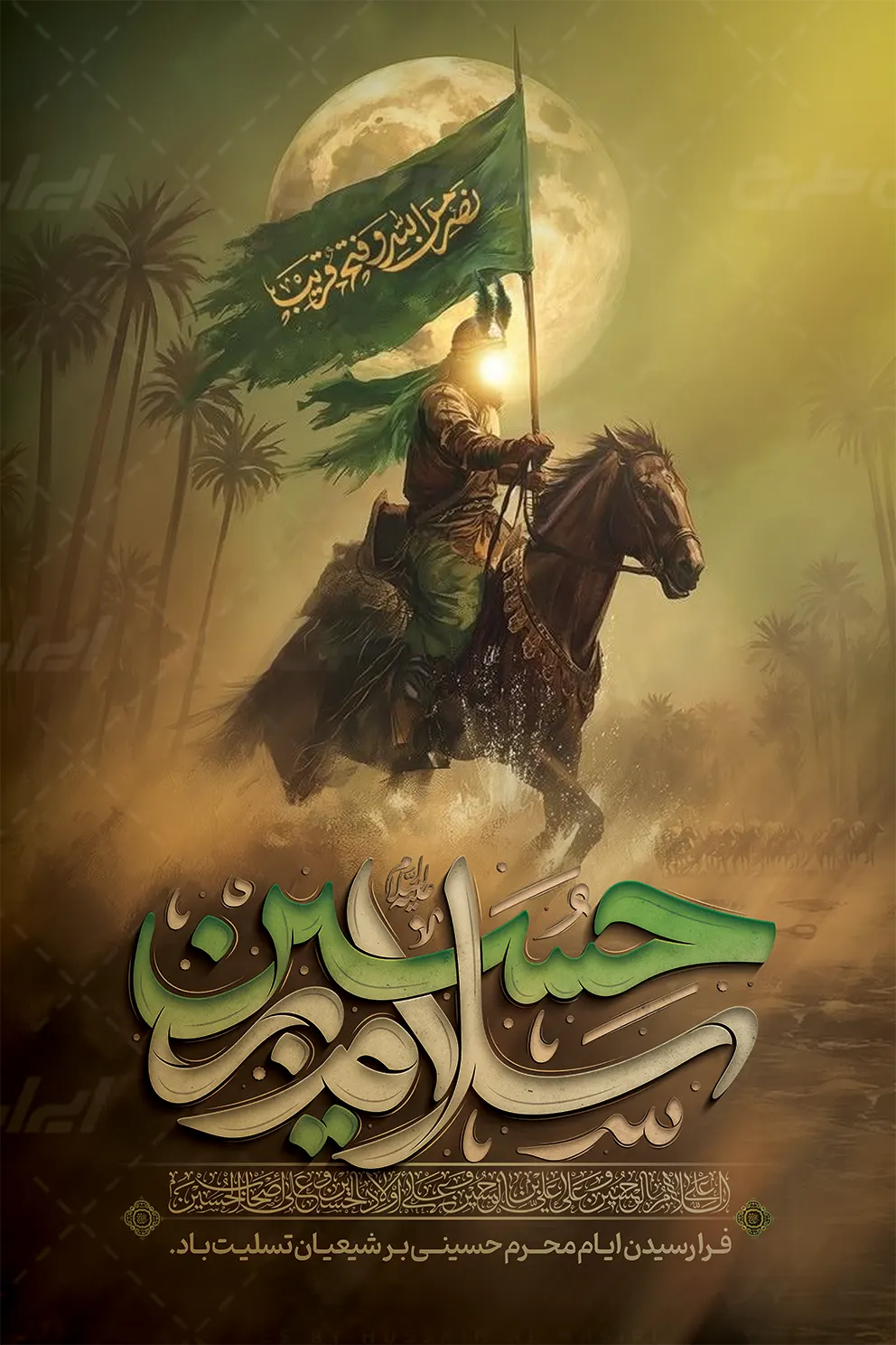 - طراحی بنر با استفاده از تایپوگرافی سلام بر حسین در طرح بنر محرم