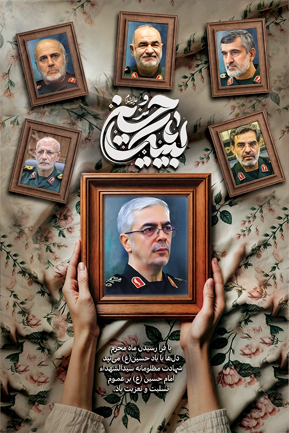 تایپوگرافی سلام بر امام حسین، تصویر شهید باقری سرداران سپاه و متن مرتبط با این حمله موشکی و متن تسلیت ماه محرم است که توسط تیم خلاق ایران طرح طراحی شده است.