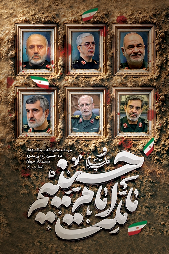 تایپوگرافی ما ملت امام حسینیم، تصویر شهید باقری سرداران سپاه و متن مرتبط با این حمله موشکی و متن تسلیت ماه محرم است که توسط تیم خلاق ایران طرح طراحی شده است.