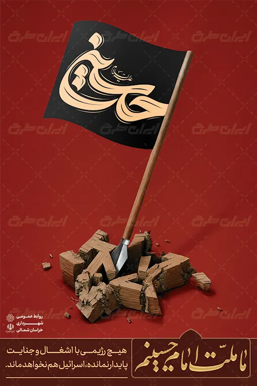 تایپوگرافی حسین و متن مرتبط با این حمله موشکی و متن تسلیت ماه محرم است که توسط تیم خلاق ایران طرح طراحی شده است.