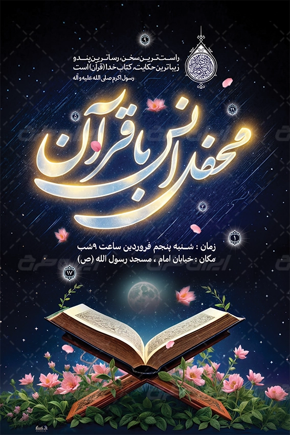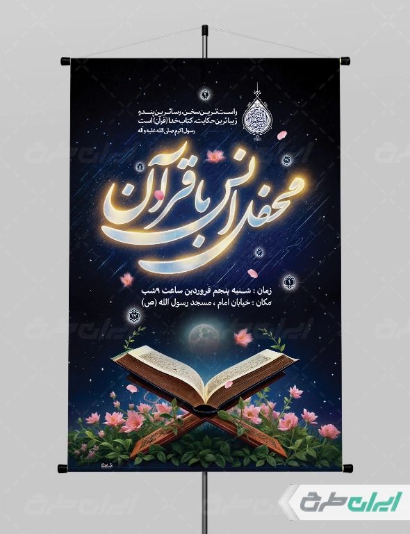 طرح بنر لایه باز محفل انس با قرآن، توسط تیم با تجربه ایران طرح جهت استفاده کاربران سایت طراحی و به صورت لایه باز در دسترس کاربران قرار گرفته است.