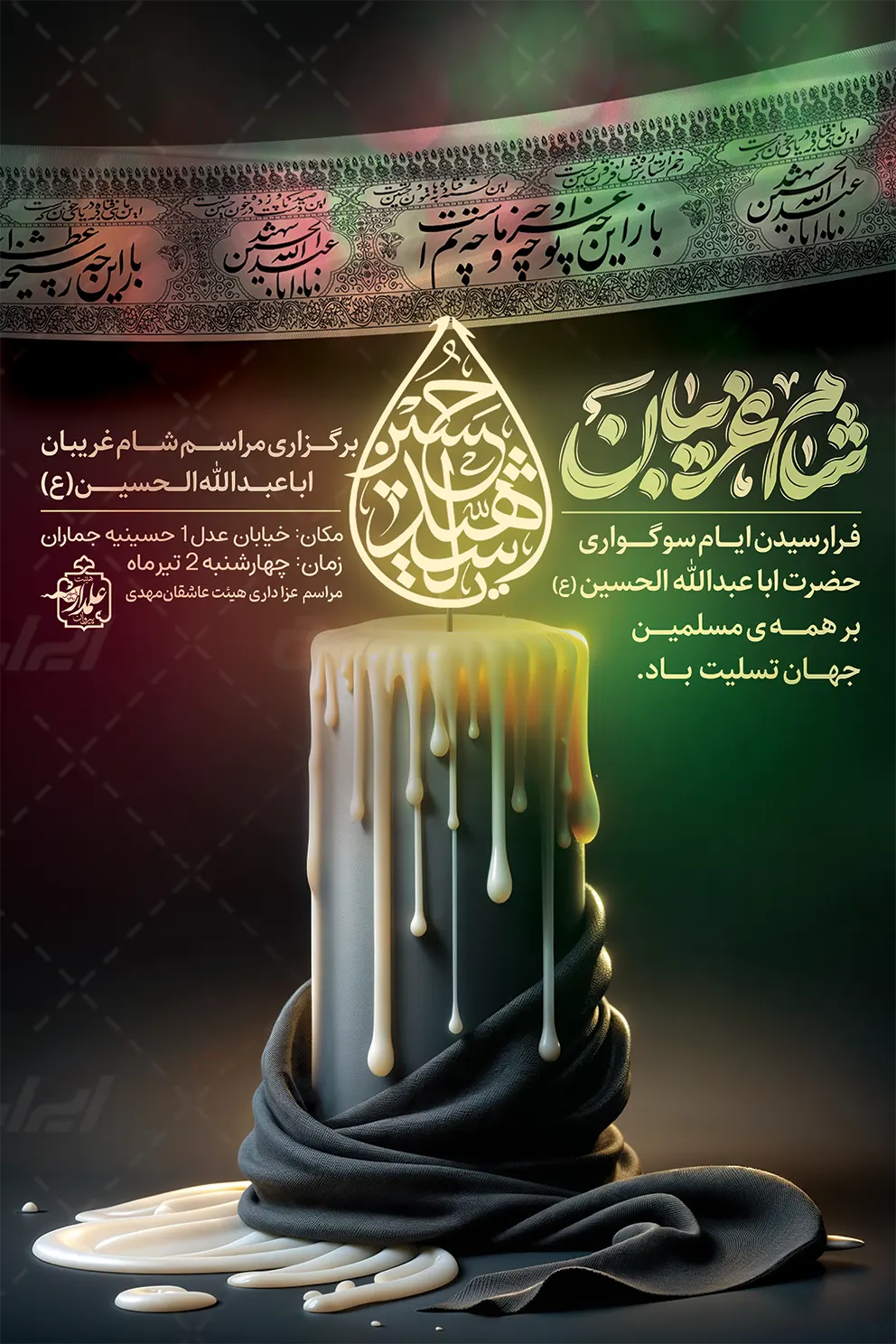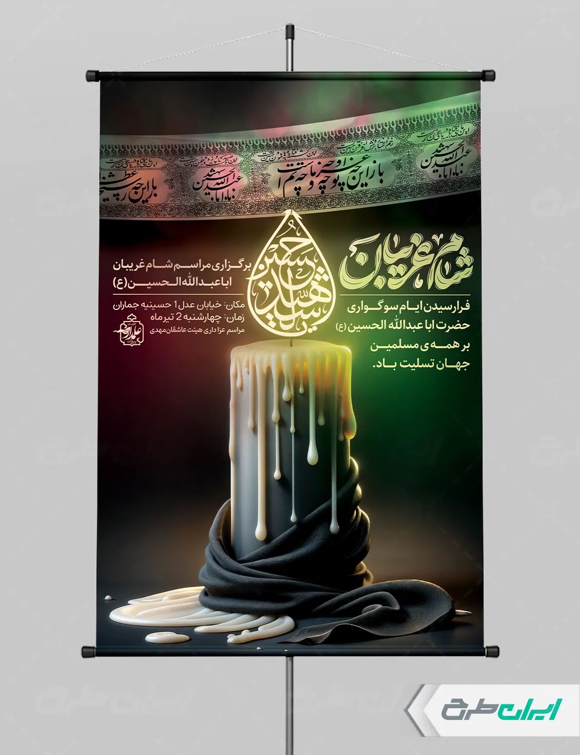 طرح لایه باز بنر مراسم شام غریبان، جهت استفاده مردم عزادار امام حسین (ع) طراحی و در دسترس کاربران سایت قرار گرفته است.