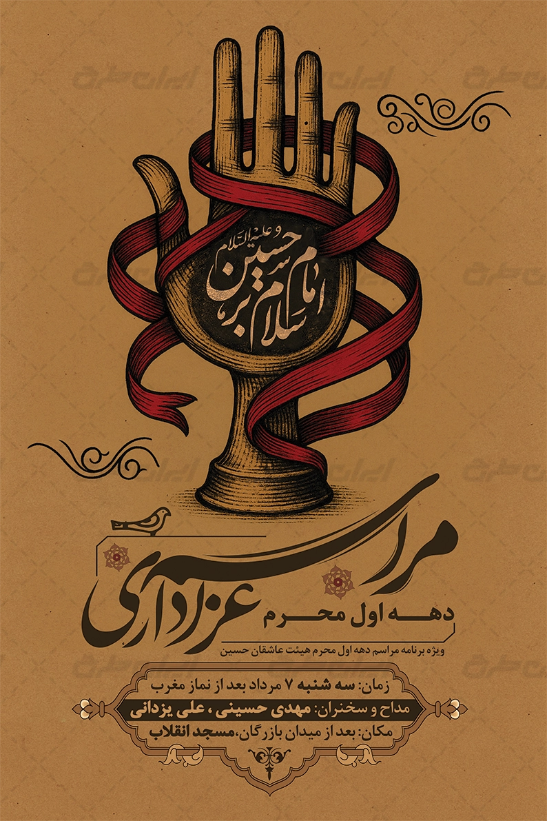 تذهیب و متن تسلیت ایام محرم می باشد که توسط طراحان ایران طرح در نرم افزار فتوشاپ طراحی شده است.