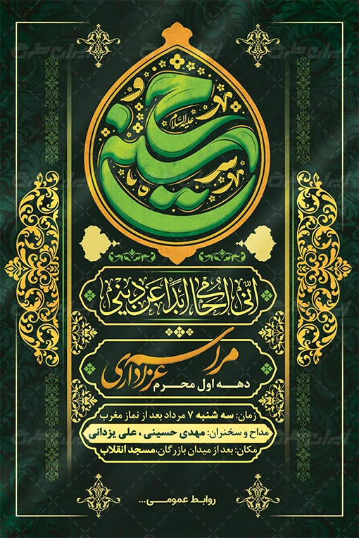 تذهیب و متن تسلیت ایام محرم می باشد که توسط طراحان ایران طرح در نرم افزار فتوشاپ طراحی شده است.