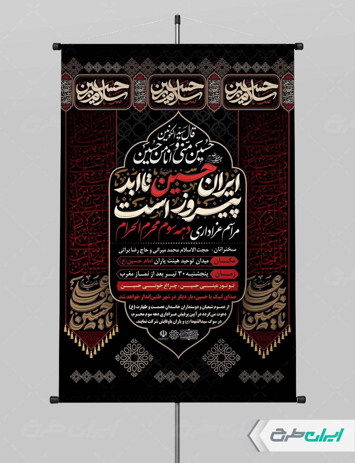 تذهیب و متن تسلیت ایام محرم می باشد که توسط طراحان ایران طرح در نرم افزار فتوشاپ طراحی شده است.