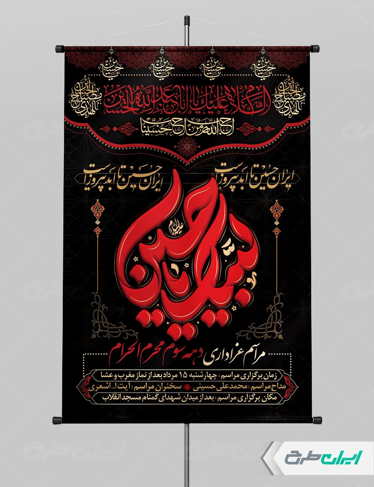 تذهیب و متن تسلیت ایام محرم می باشد که توسط طراحان ایران طرح در نرم افزار فتوشاپ طراحی شده است.
