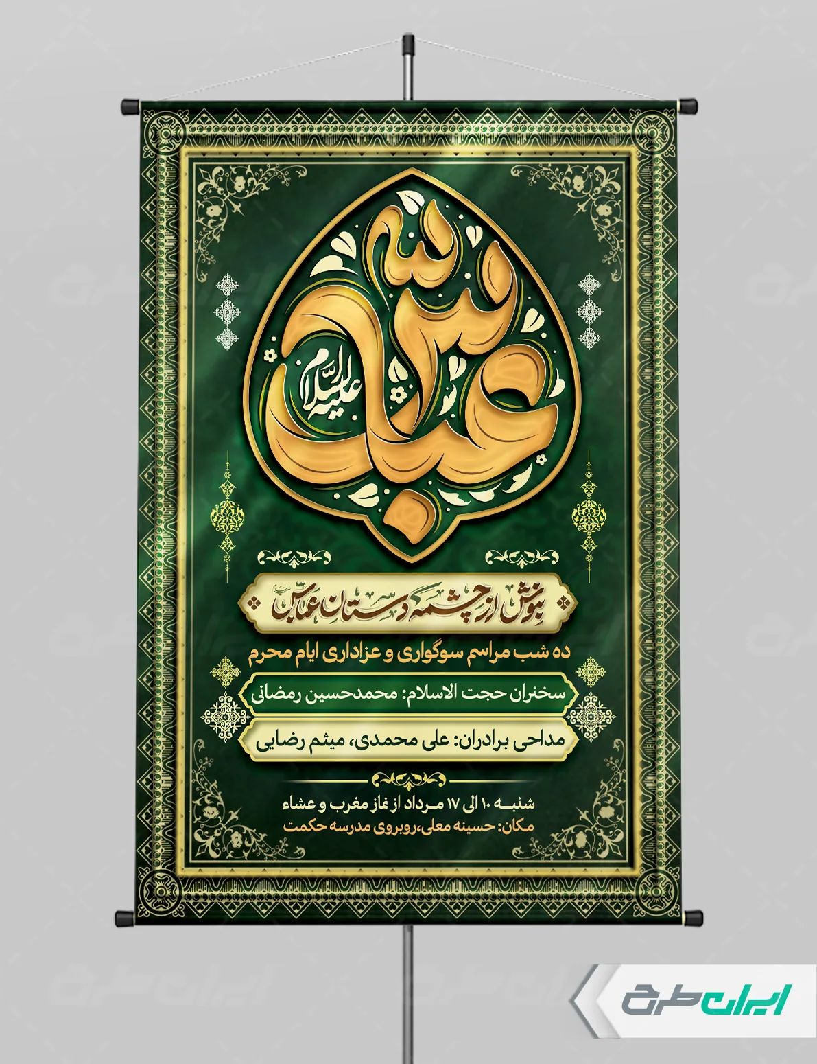تایپوگرافی عباس و متن تسلیت ایام محرم می باشد که توسط طراحان ایران طرح در نرم افزار فتوشاپ طراحی شده است.