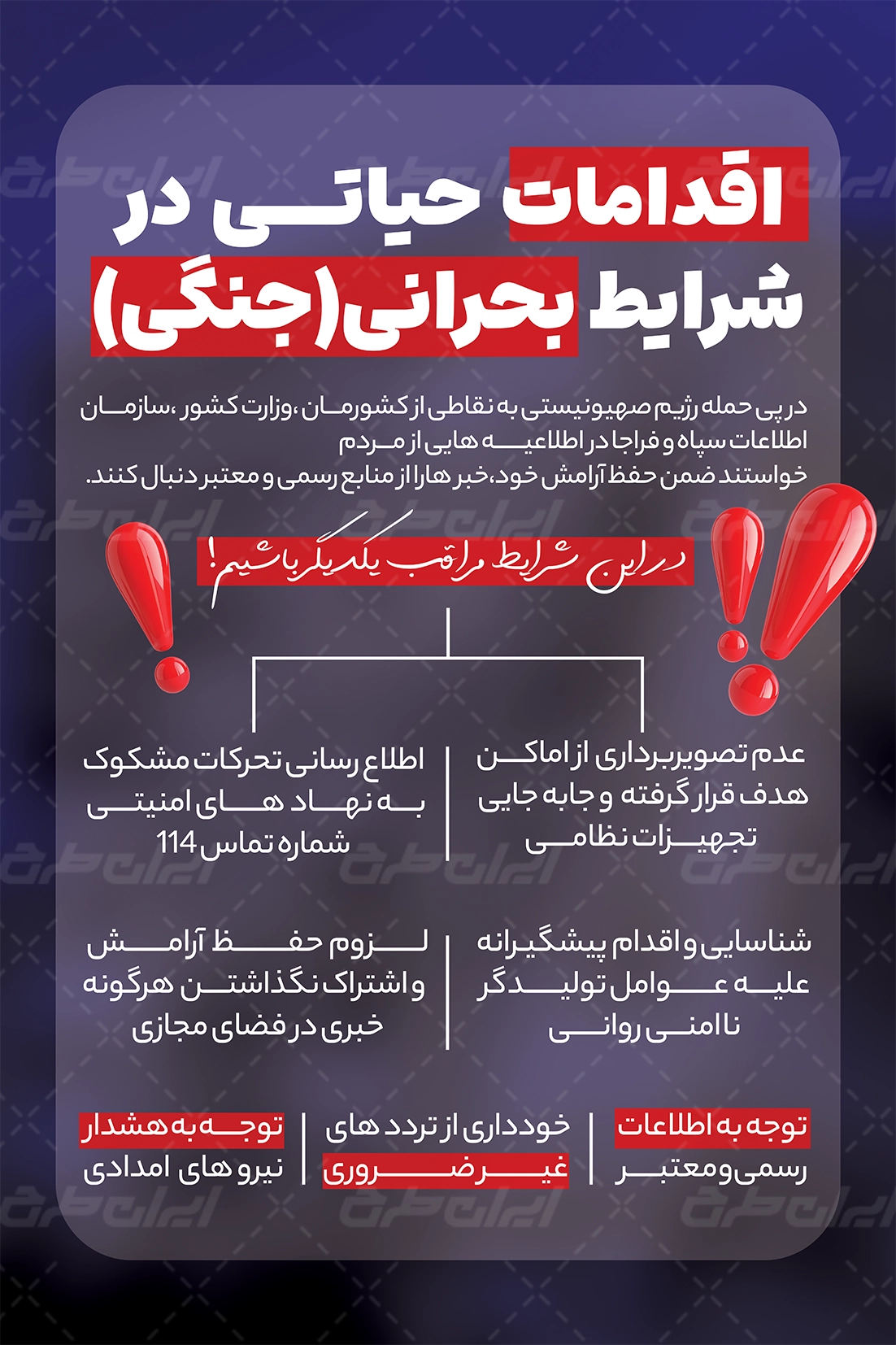 طرح بنر و پوستر نکات عمومی شرایط جنگی شامل: