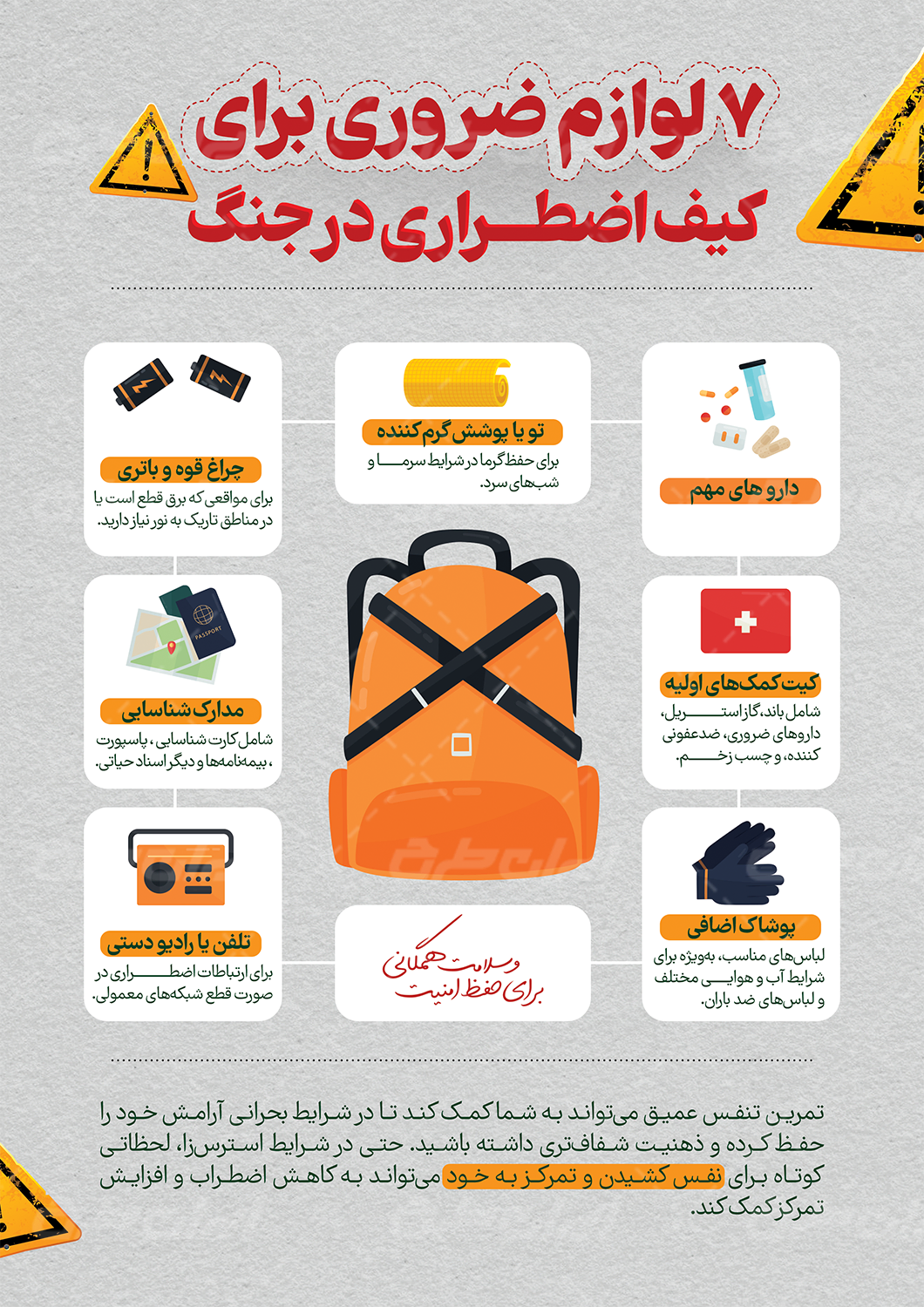 پوستر نکات ایمنی و کیف اضطراری شرایط جنگی