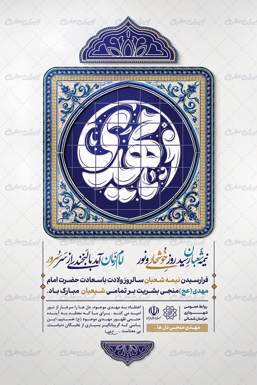 تایپوگرافی یا مهدی و متن تبریک ولادت امام مهدی می باشد که توسط تیم ایران طرح طراحی شده است.