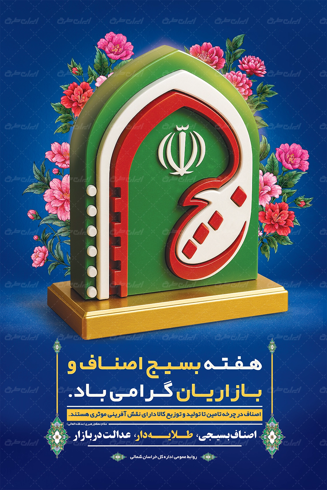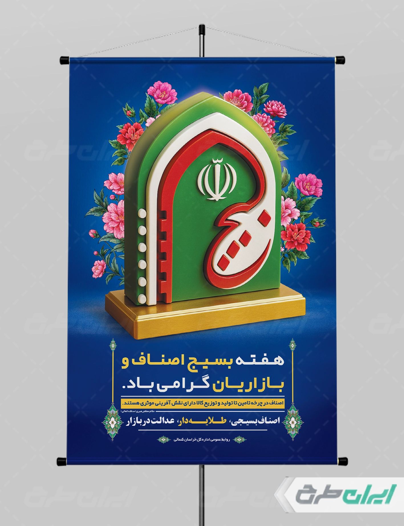 - استفاده مناسب طرح گل و متن گرامیداشت هفته بسیج اصناف و بازاریان در طرح بنر هفته بسیج اصناف و بازاریان