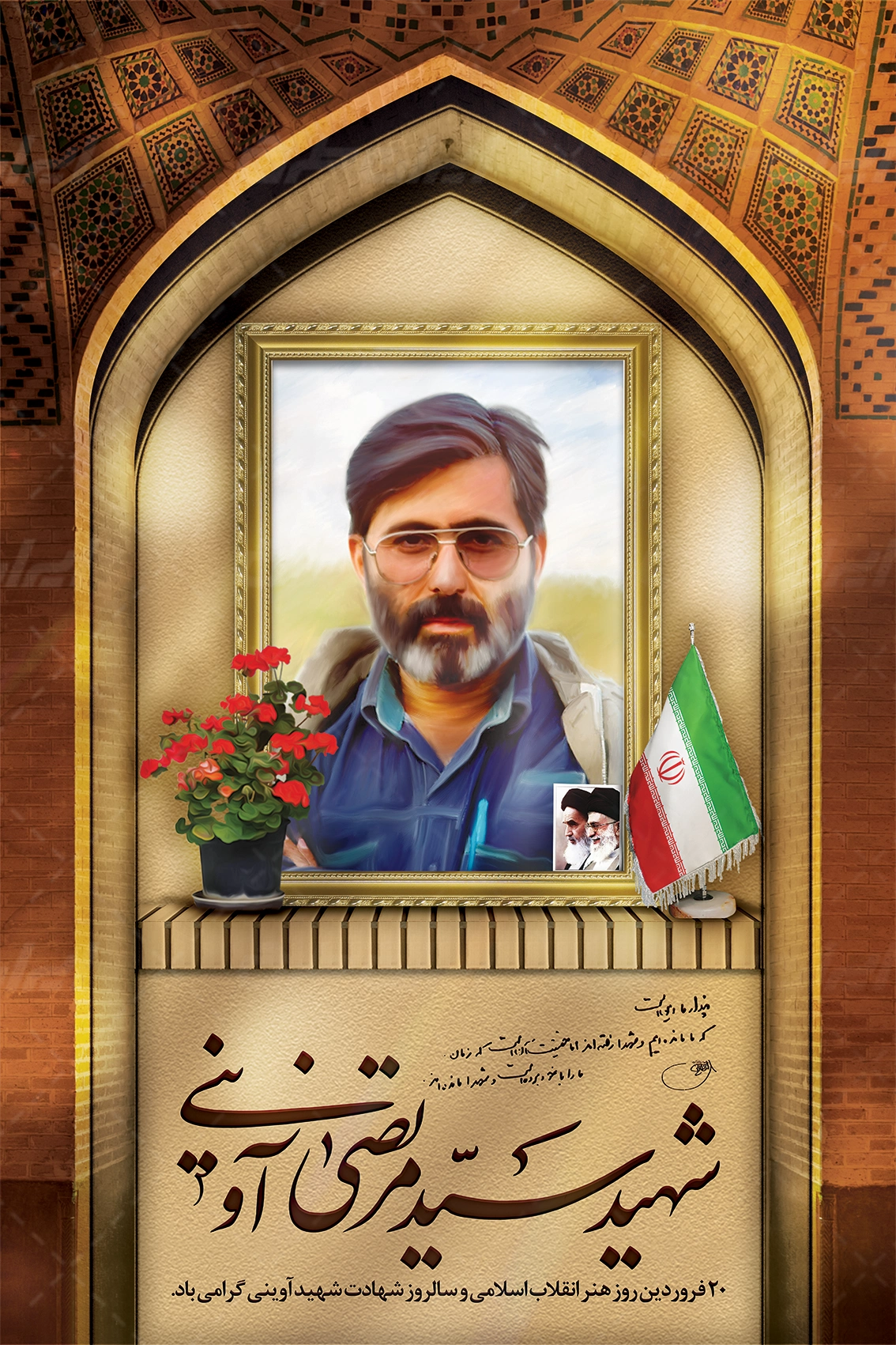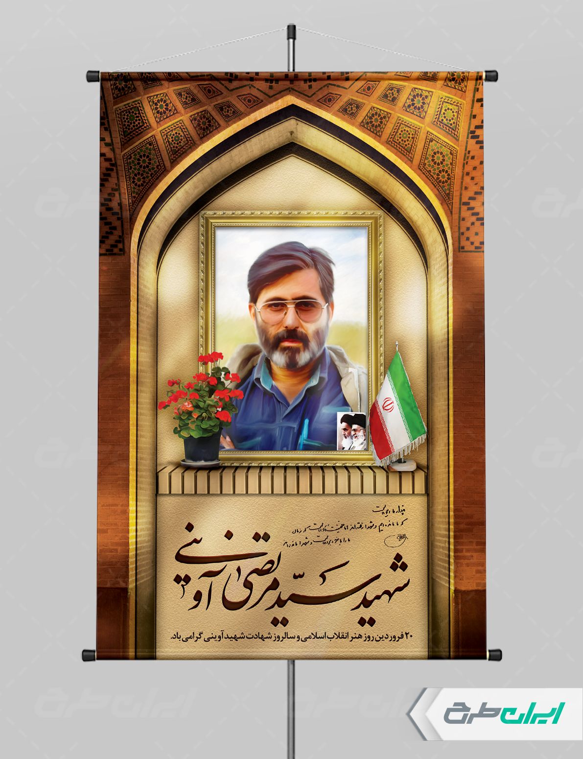 تصویر شهید آوینی و متن گرامیداشت مرتبط با طرح بنر می باشد که توسط تیم ایران طرح طراحی شده است.