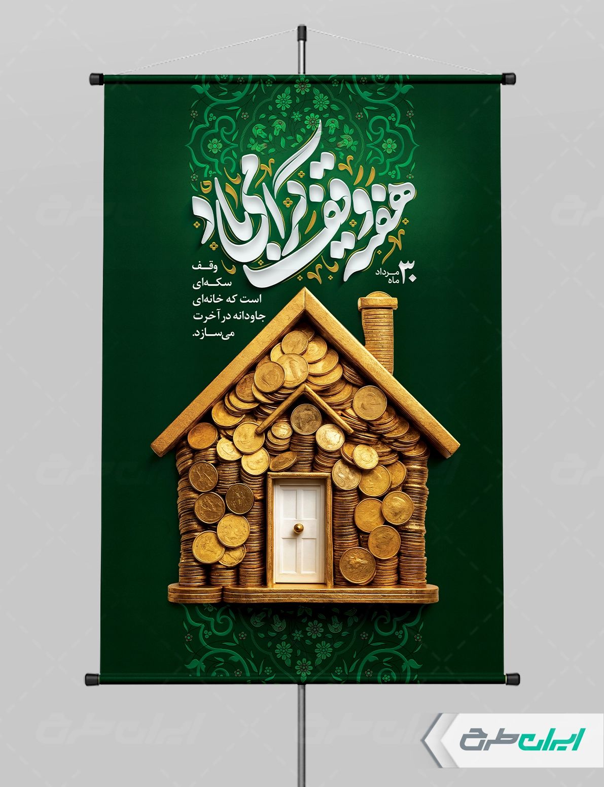 بنر لایه باز هفته وقف، توسط تیم با تجربه ایران طرح جهت استفاده کاربران سایت طراحی و به صورت لایه باز در دسترس کاربران قرار گرفته است.