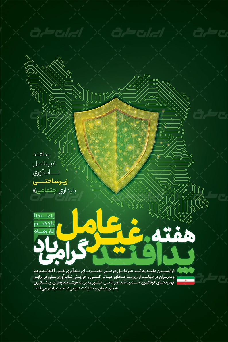 طرح بنر لایه باز هفته پدافند غیر عامل، توسط تیم با تجربه ایران طرح جهت استفاده کاربران سایت طراحی و به صورت لایه باز در دسترس کاربران قرار گرفته است.