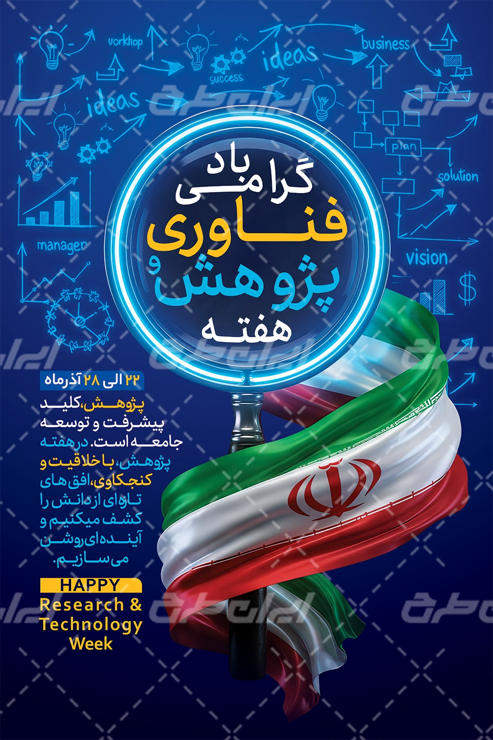 وکتور، بک گراند کاربردی و متن گرامیداشت هفته پژوهش و فناوری می باشد که توسط تیم ایران طرح طراحی شده است.