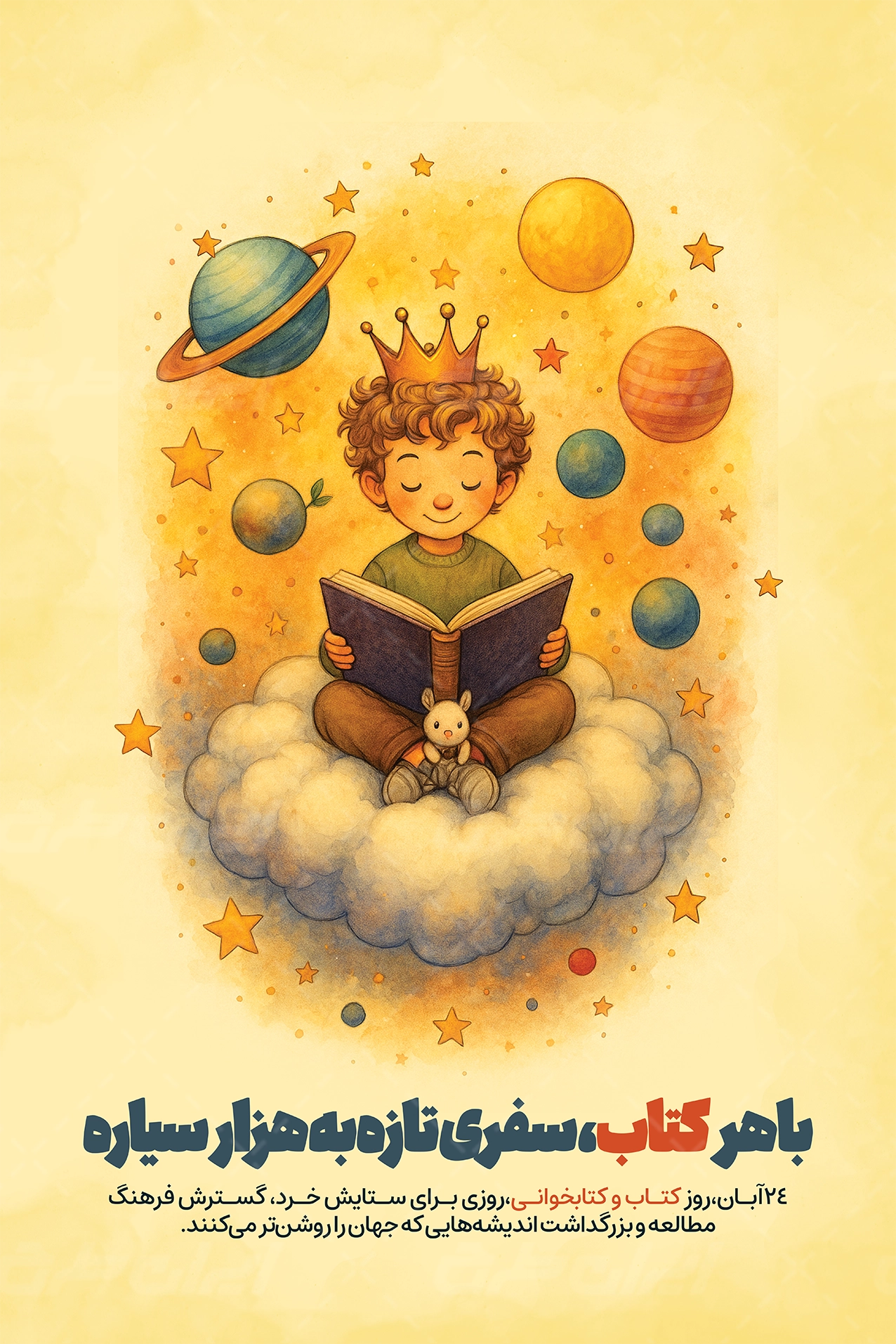 تصویر کتاب و متن گرامیداشت روز کتاب و کتابخوانی میباشد که توسط تیم خلاق ایران طرح طراحی شده است.