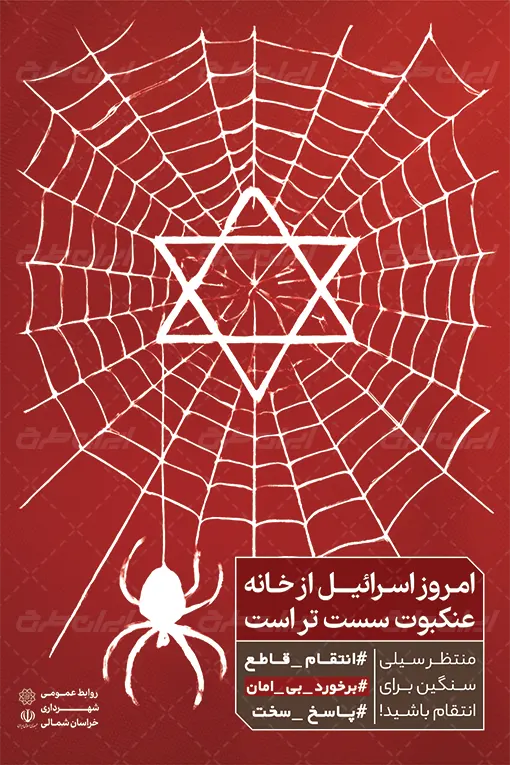 تصویر عنکبوت و متن مرتبط با این حمله موشکی است که توسط تیم خلاق ایران طرح طراحی شده است.