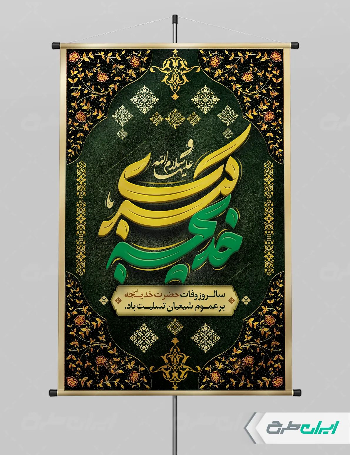 بنر وفات حضرت خدیجه (س)، توسط تیم حرفه ای ایران طرح جهت استفاده کاربران سایت طراحی و به صورت لایه باز در دسترس کاربران قرار گرفته است.