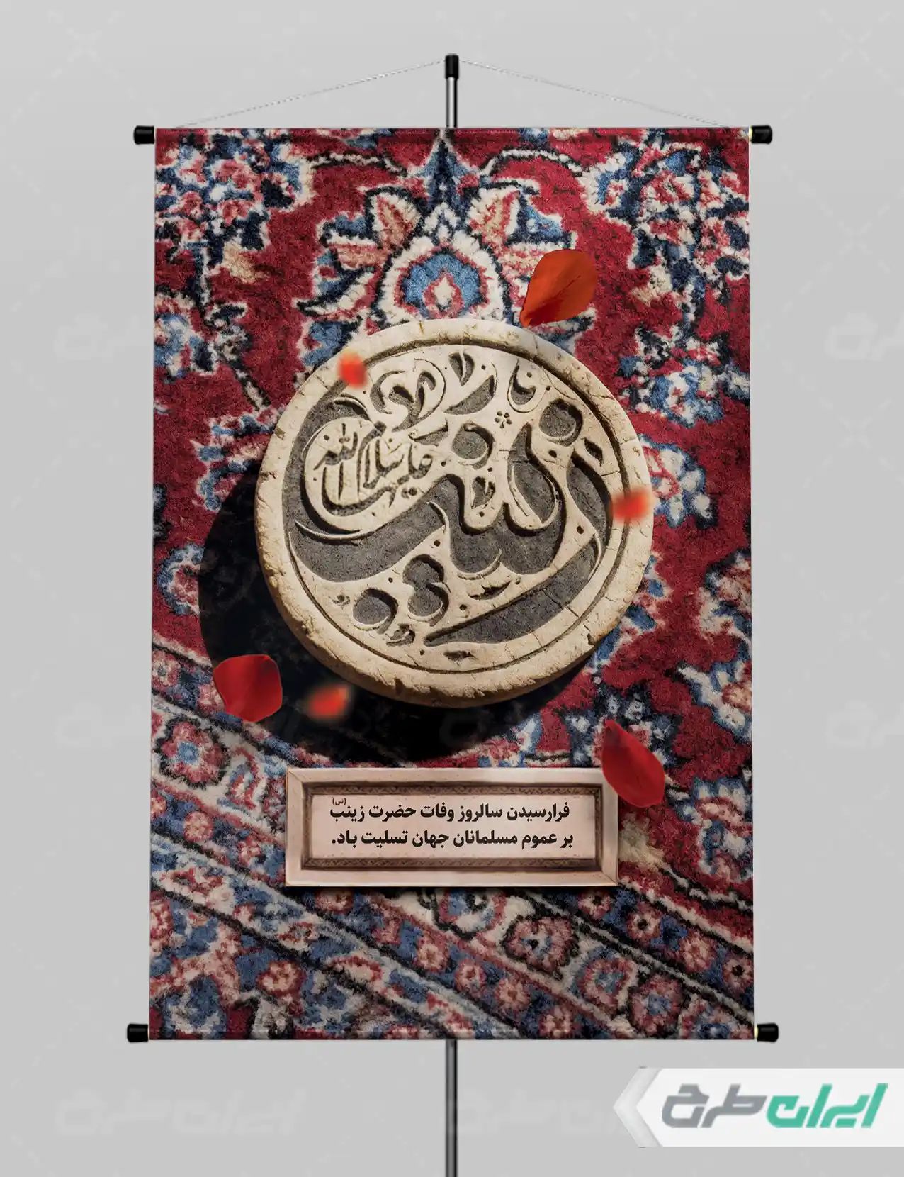بنر وفات حضرت زینب (س)، توسط تیم حرفه ای ایران طرح جهت استفاده کاربران سایت طراحی و به صورت لایه باز در دسترس کاربران قرار گرفته است.