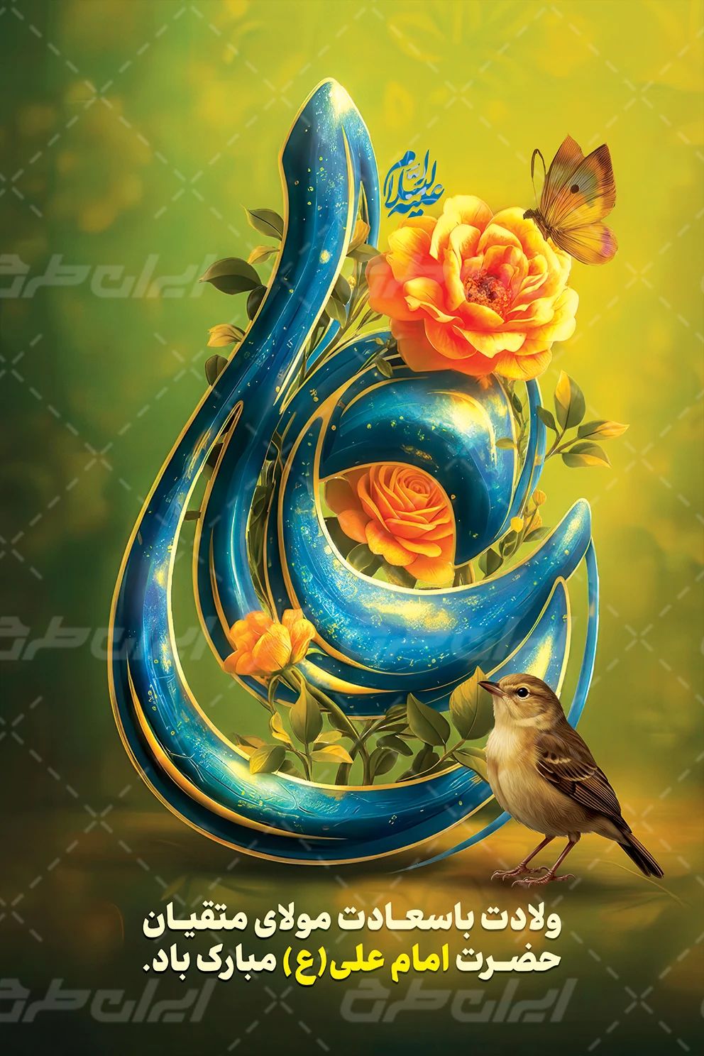 پوستر ولادت امام علی (ع) با تایپوگرافی علی