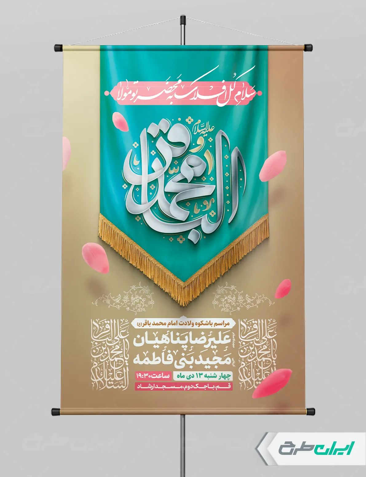 بنر سالروز ولادت امام محمد باقر، توسط تیم حرفه ای ایران طرح جهت استفاده کاربران سایت طراحی و به صورت لایه باز در دسترس کاربران قرار گرفته است.