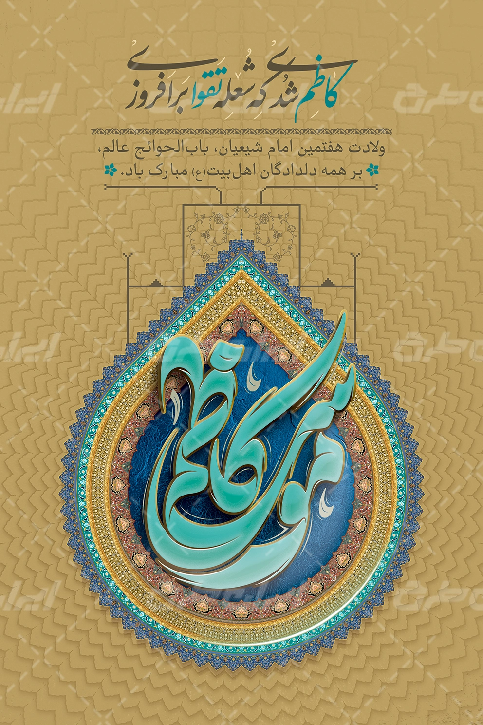 تایپوگرافی موسی کاظم، طرح گل، تذهیب و متن گرامیداشت ولادت امام موسی کاظم می باشد.