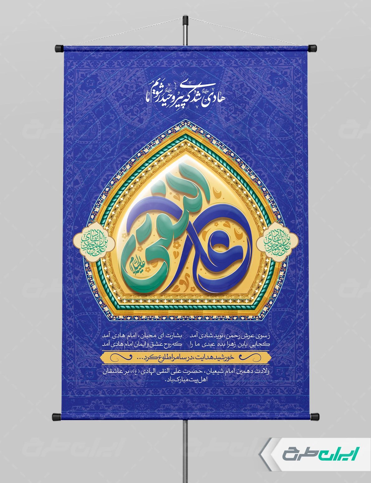 طرح بنر جشن میلاد امام هادی(ع) به مناسبت این سالروز فرخنده و با سعادت توسط ایران طرح طراحی شده است.