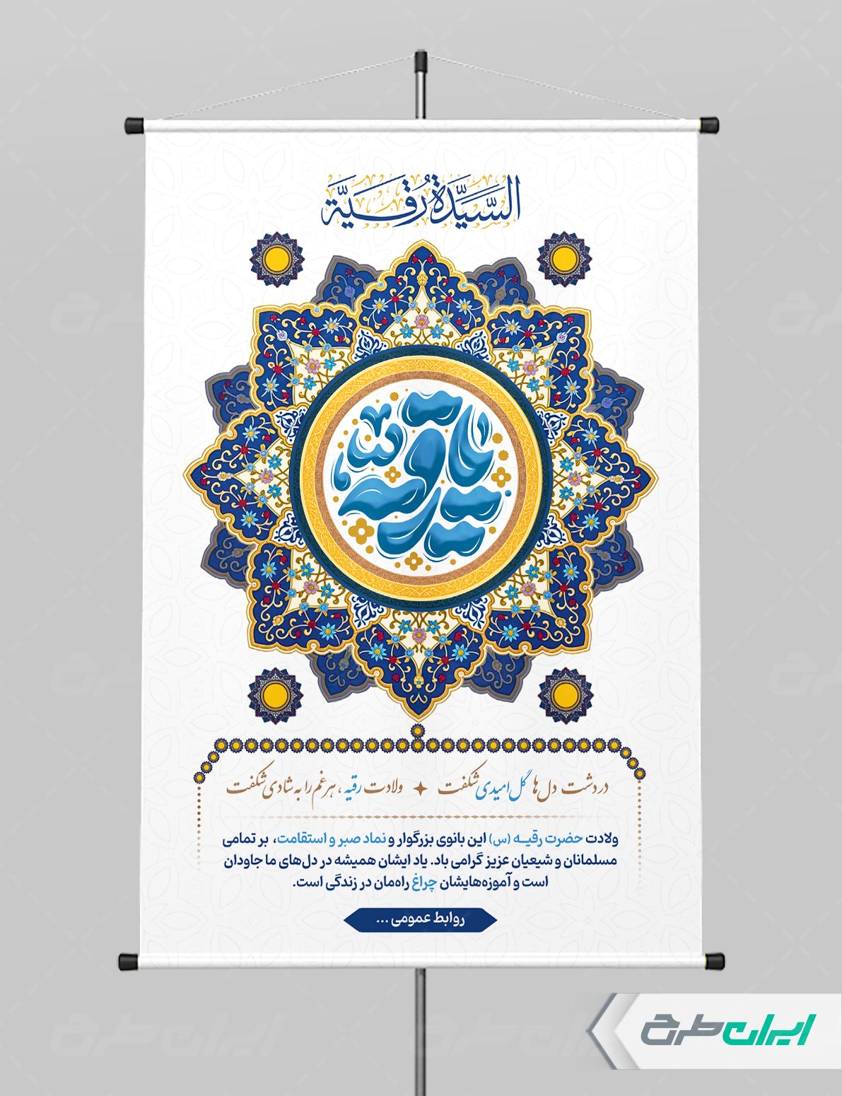 بنر لایه باز بنر حضرت رقیه، توسط تیم حرفه ای ایران طرح جهت استفاده کاربران سایت طراحی و به صورت لایه باز در دسترس کاربران قرار گرفته است.