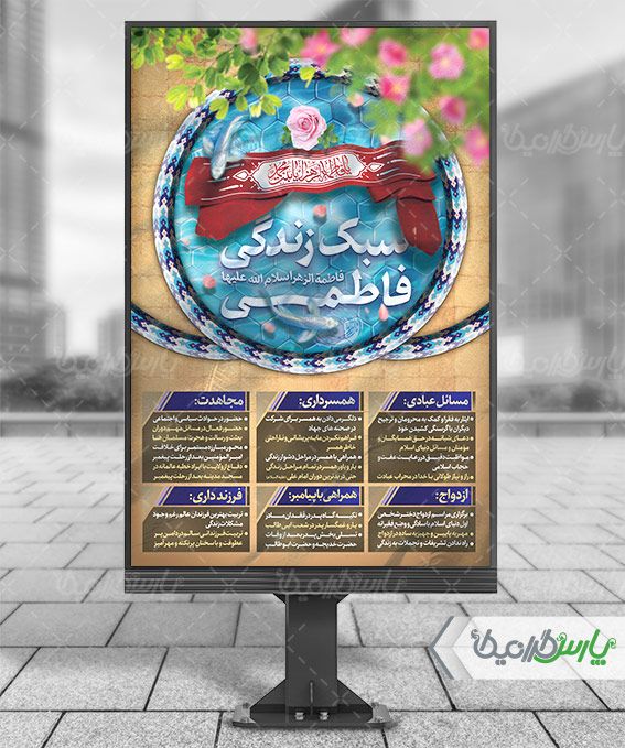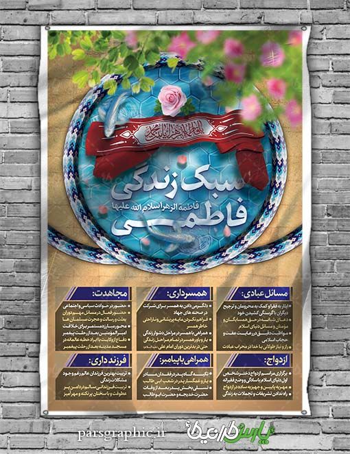 در طرح بنر لایه باز روز مادر از تایپوگرافی سبک زندگی فاطمی استفاده شده است.