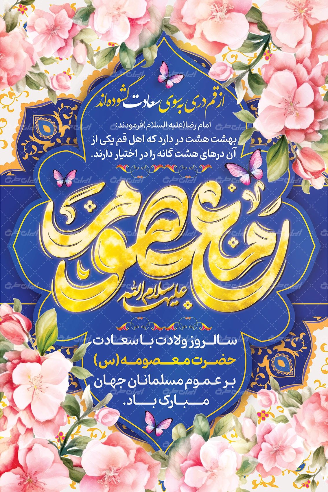 بنر ولادت حضرت معصومه (س)، توسط تیم حرفه ای ایران طرح جهت استفاده کاربران سایت طراحی و به صورت لایه باز در دسترس کاربران قرار گرفته است.