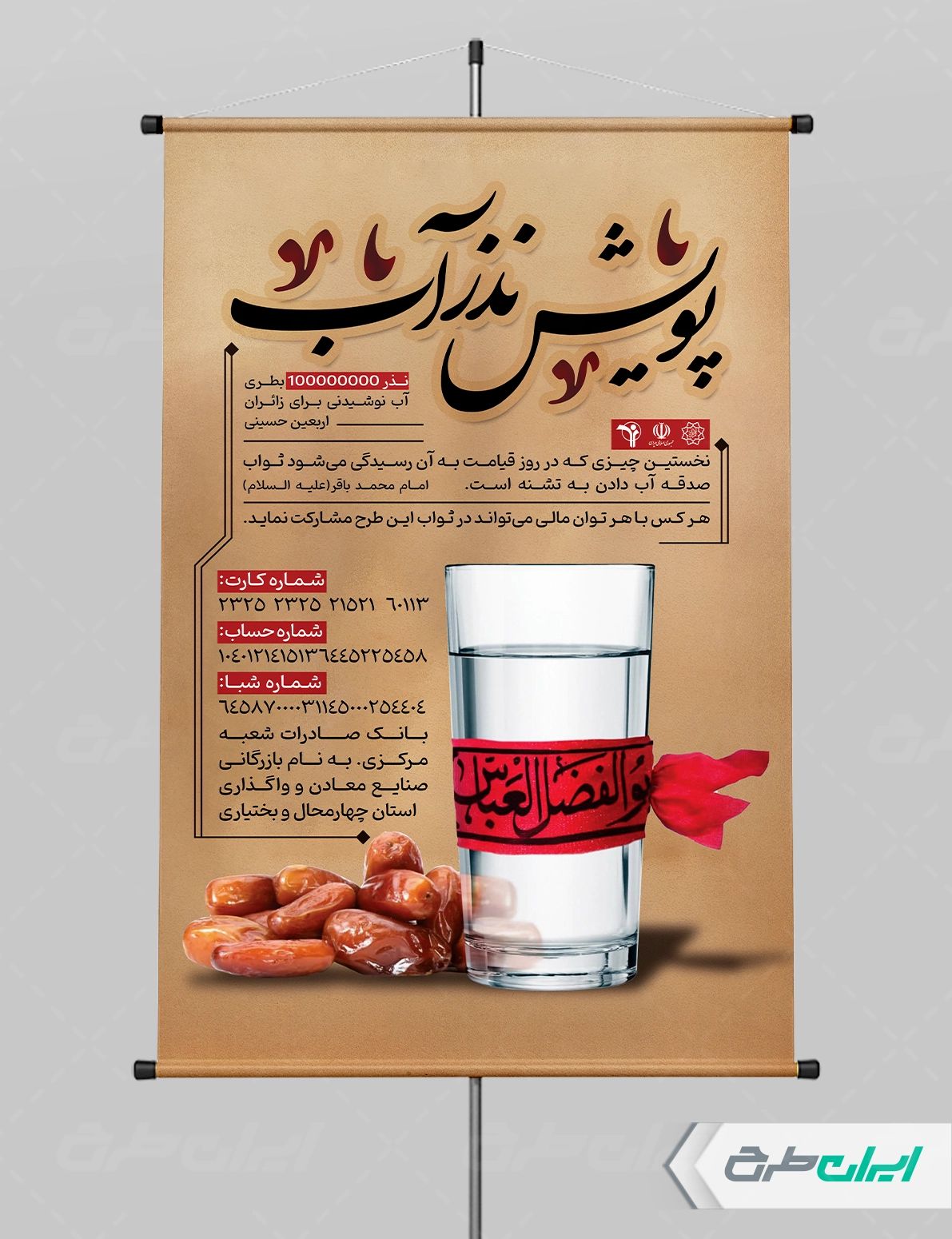طرح لایه باز بنر شهری ایام پویش نذر آب، جهت استفاده امت عزادار امام حسین (ع) طراحی و در دسترس کاربران سایت قرار گرفته است.