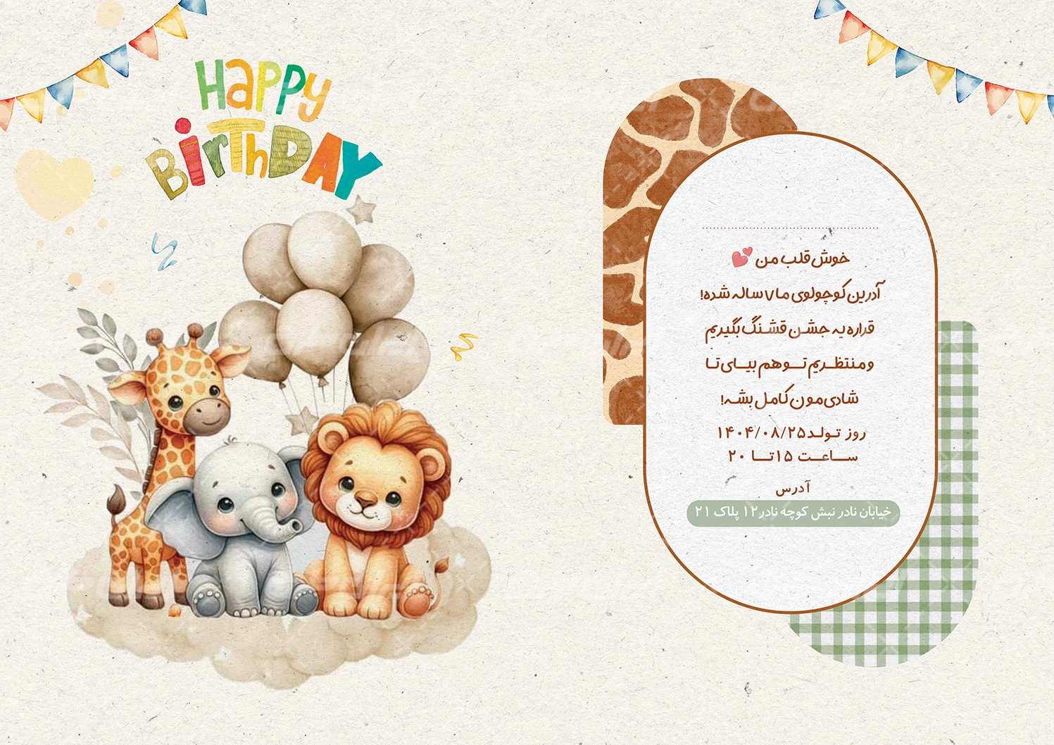 یکی از کاربردهای مهم طرح لایه باز کارت دعوت جشن تولد، ایجاد تنوع و انعطافپذیری در طراحی است. شما میتوانید با استفاده از این طرحها، کارت دعوت را متناسب با سن فرد جشنگیرنده (مثلاً کودکان، بزرگسالان یا سالهای خاص) طراحی کنید. این طرحها میتوانند شامل تصاویری از شخصیتهای محبوب، تمهای رنگی مختلف، یا حتی سبکهای خاص مانند کارتهای مینیمالیستی، فانتزی یا لوکس باشند. این قابلیت به شما این امکان را میدهد که کارت دعوت را با توجه به تم تولد و سلیقه مخاطب به بهترین شکل ممکن طراحی کنید.