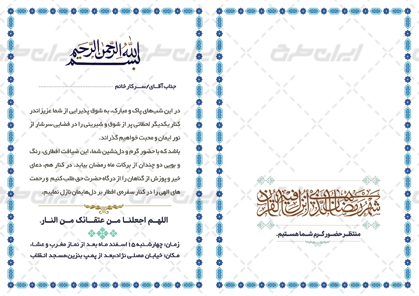 طرح کارت دعوت ماه رمضان شامل: