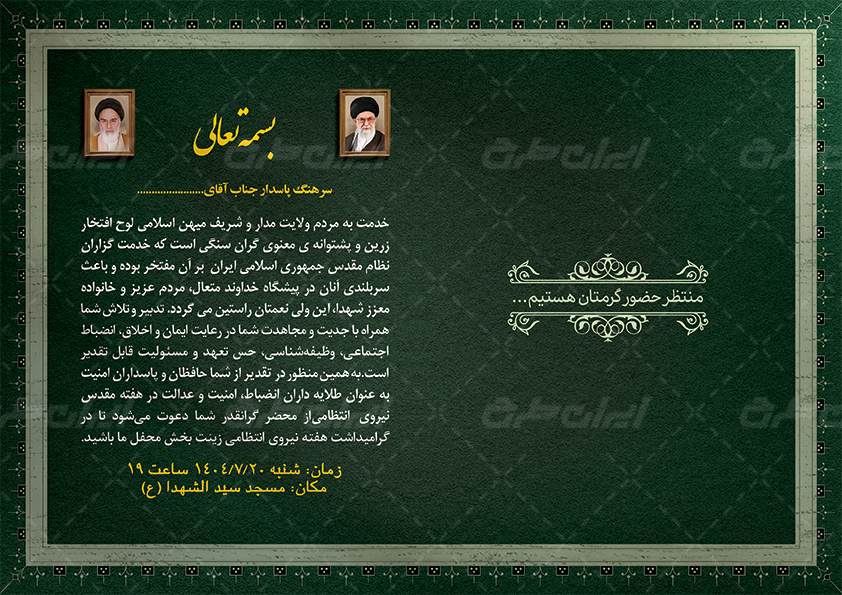 طرح کارت دعوت مراسم هفته نیروی انتظامی شامل: