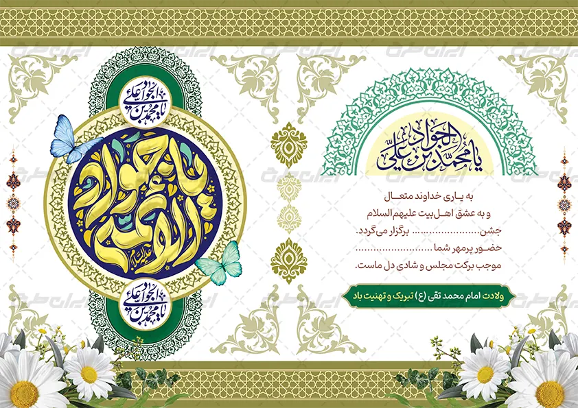 کارت دعوت مراسم ولادت امام جواد (ع) , طرح لایه باز کارت دعوت مراسم ولادت امام جواد (ع) , طرح کارت دعوت مراسم ولادت امام جواد (ع) ,