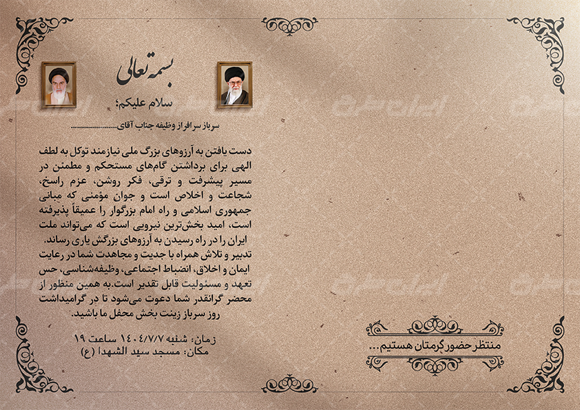 مشخصات فنی کارت دعوت مراسم بزرگداشت شهدا
