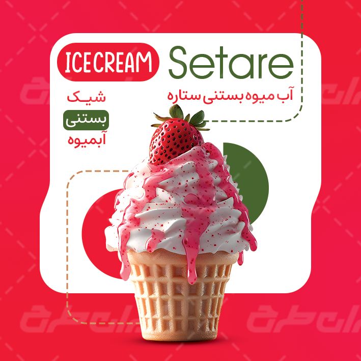 - همنشینی مناسب رنگ قرمز با طرح بستنی فروشی