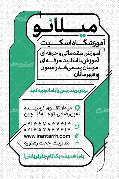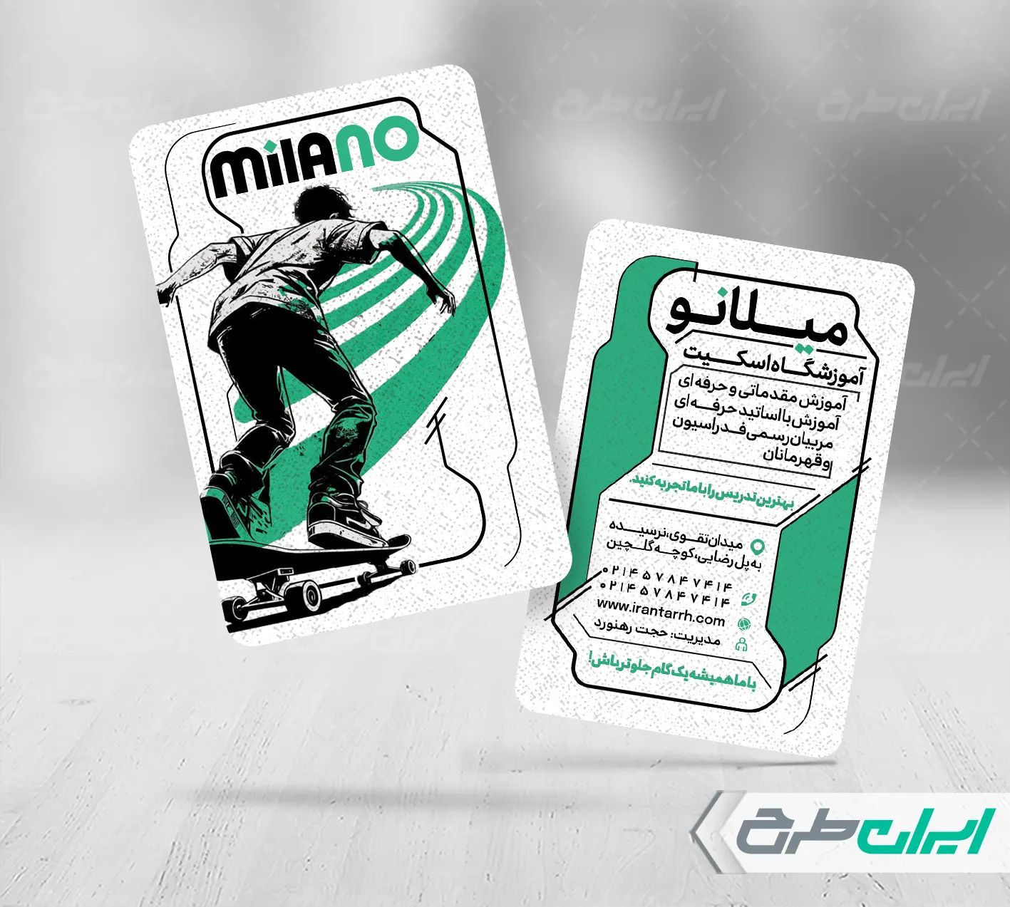 کارت ویزیت آموزشگاه اسکیت ،جهت تبلیغات این دسته از باشگاه ها توسط تیم ایران طرح طراحی شده است.