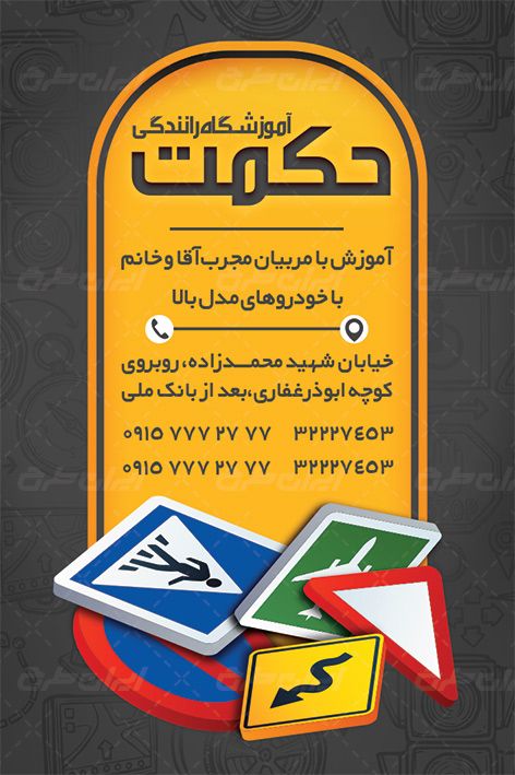مشخصات فنی طرح کارت ویزیت آموزشگاه رانندگی
