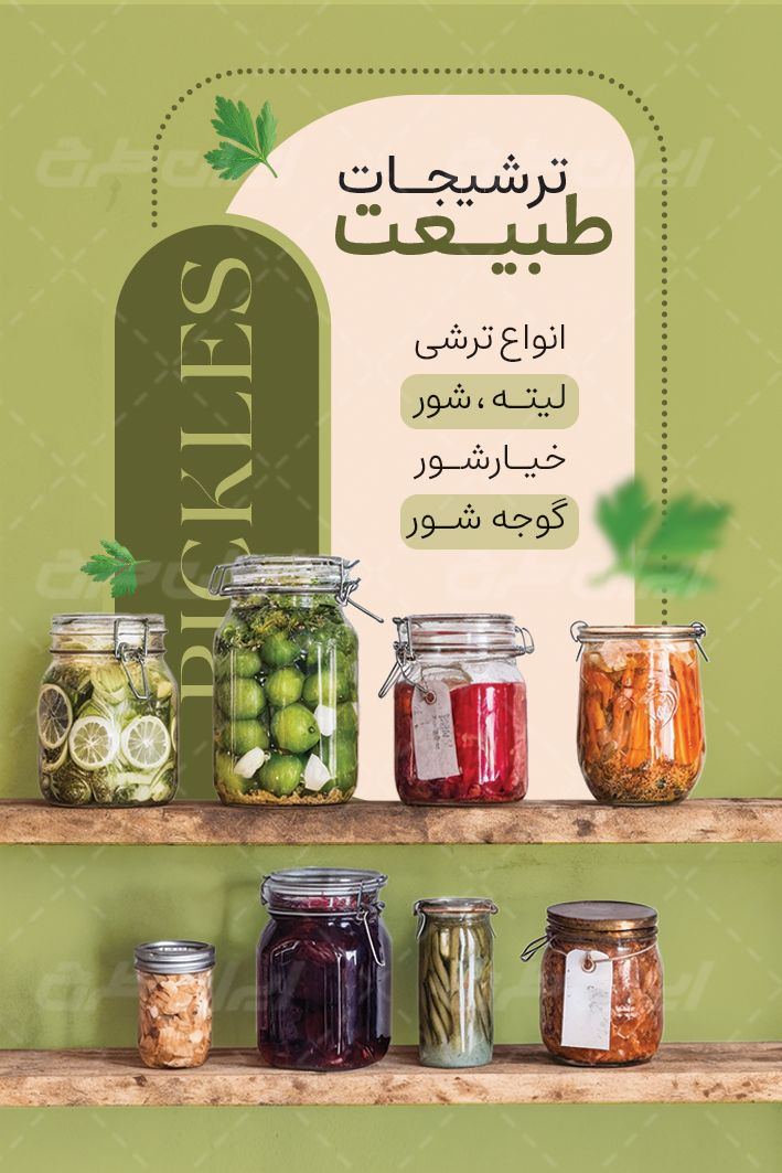 طرح کارت ویزیت فروشگاه ترشی شامل:
