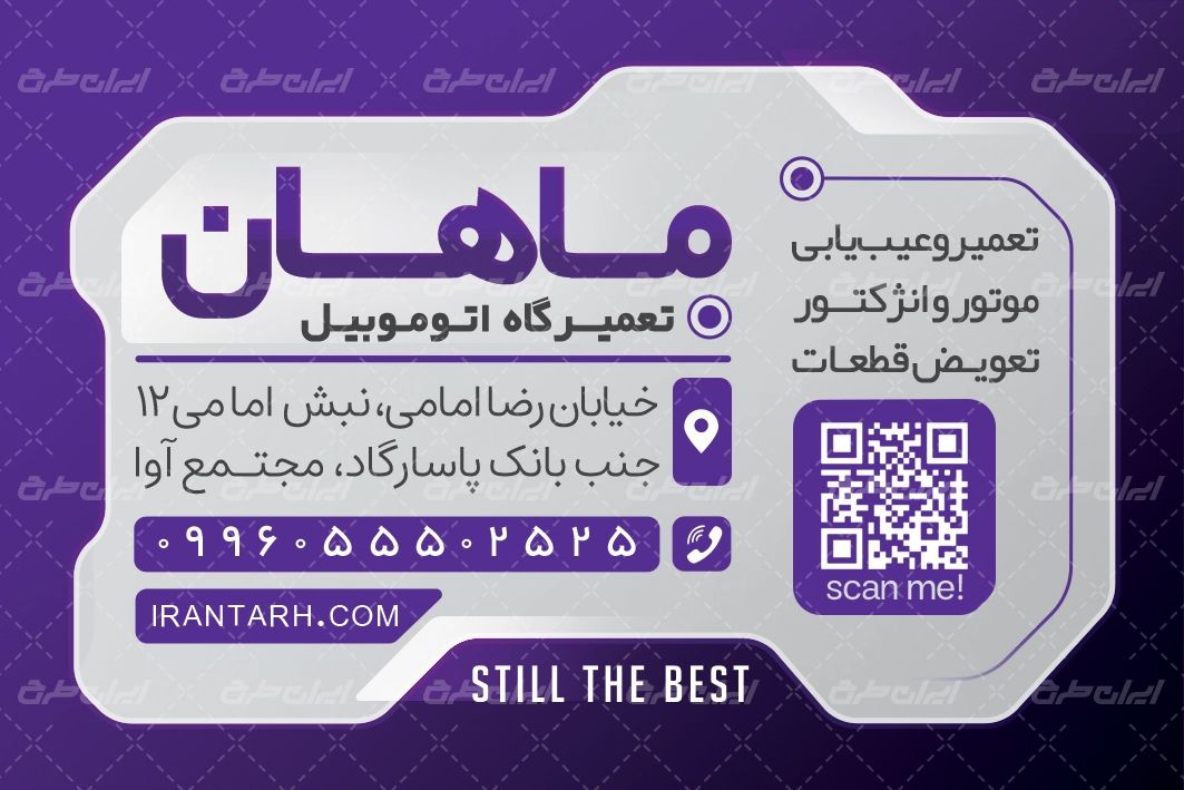 کارت ویزیت لایه باز تعمیرگاه توسط تیم ایران طرح جهت تبلیغات و بازاریابی این دسته از مشاغل طراحی و در دسترس کاربران سایت قرار گرفته است.