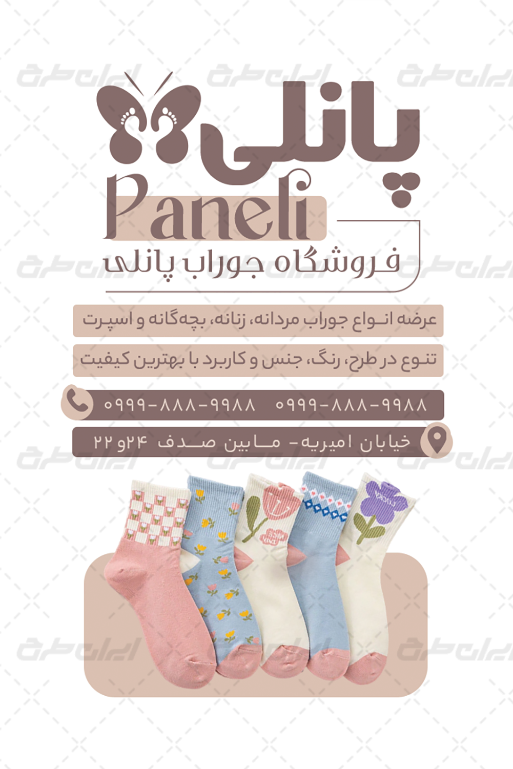 طرح کارت ویزیت فروشگاه جوراب شامل: