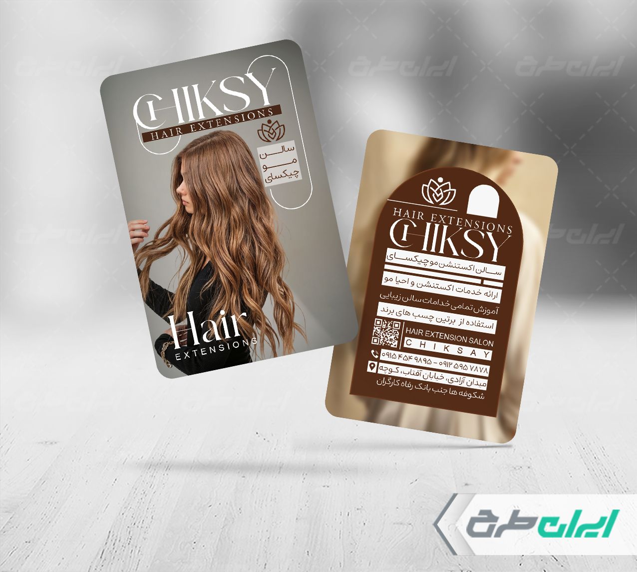 مشخصات فنی کارت ویزیت لایه باز خدمات اکستنشن مو