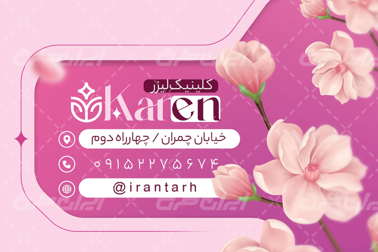 - هم نشینی مناسب رنگ صورتی با طرح کارت ویزیت