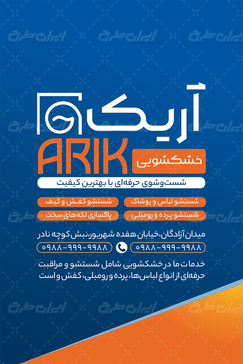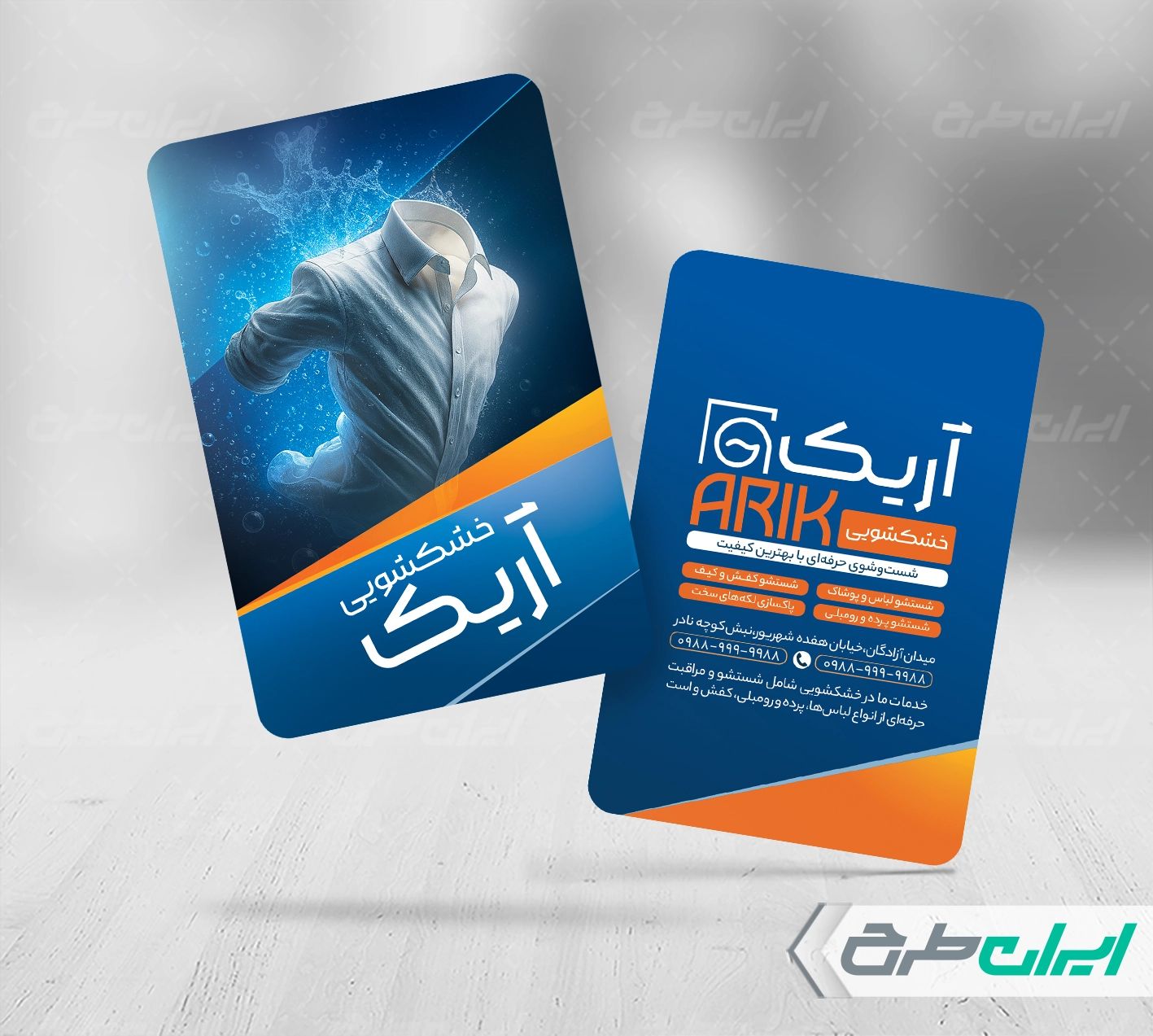 کارت ویزیت خشکشویی ،جهت تبلیغات این دسته از مشاغل توسط تیم ایران طرح طراحی شده است.