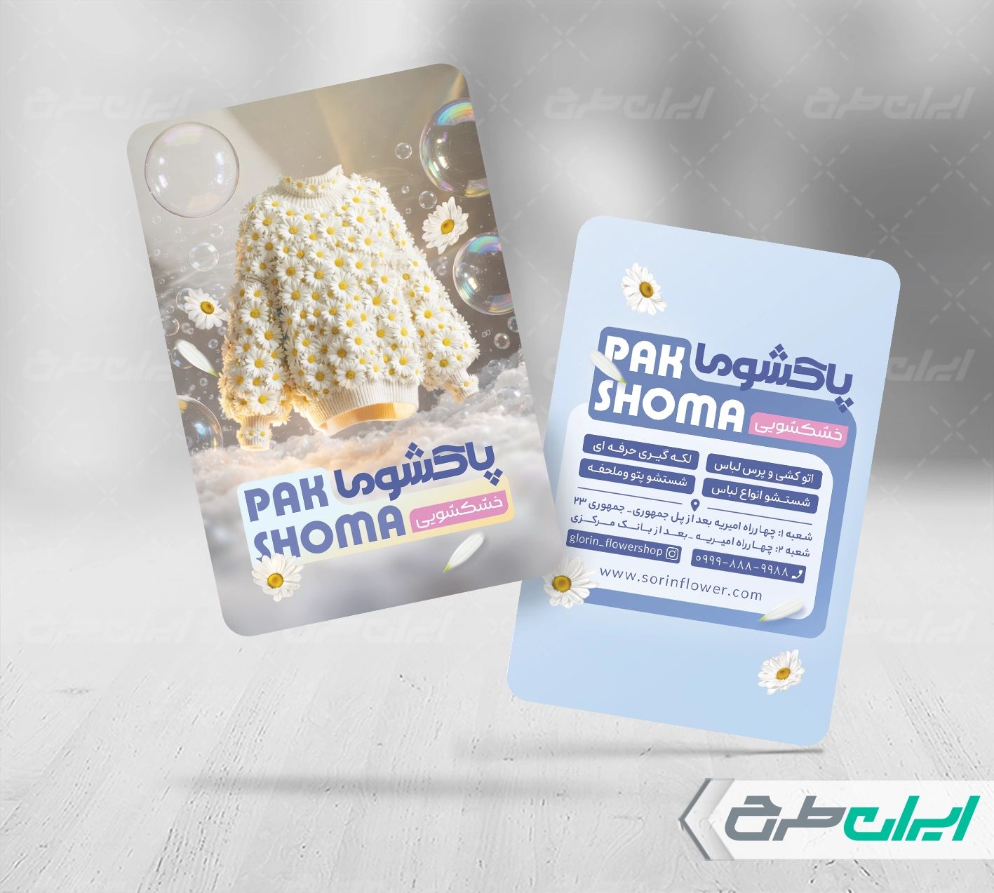 کارت ویزیت خشکشویی ،جهت تبلیغات این دسته از مشاغل توسط تیم ایران طرح طراحی شده است.