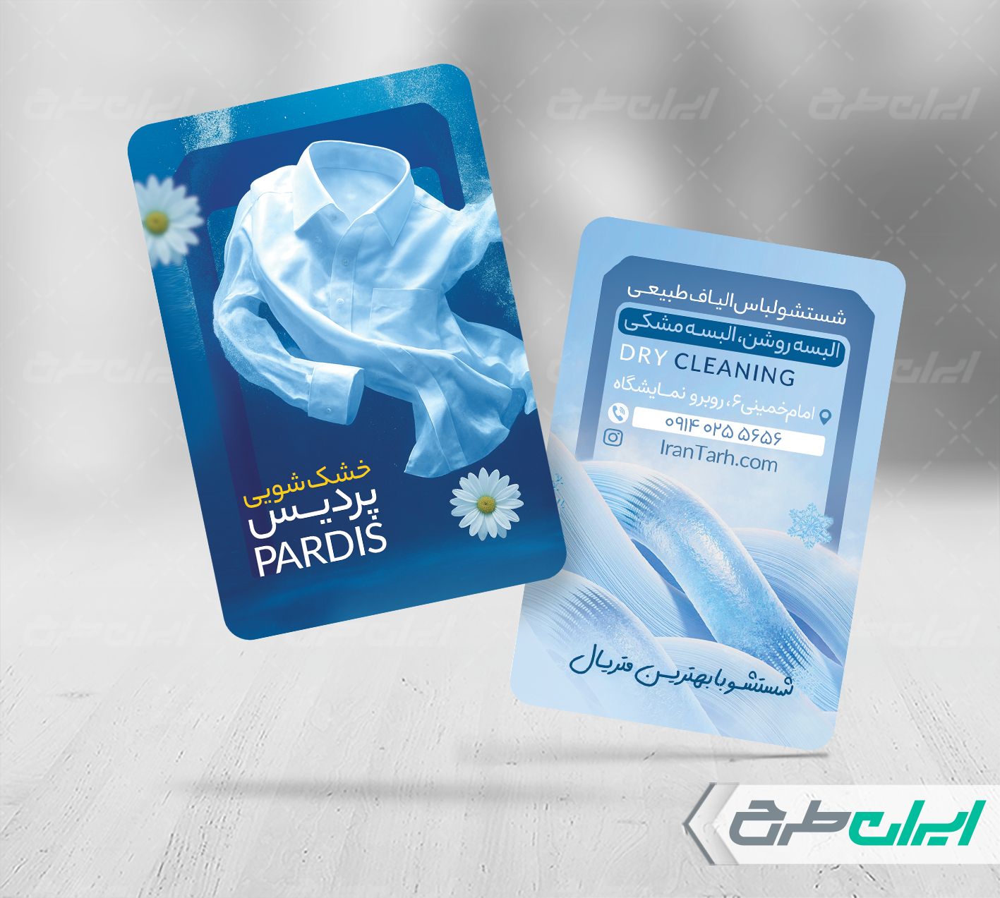 کارت ویزیت خشکشویی ،جهت تبلیغات این دسته از مشاغل توسط تیم ایران طرح طراحی شده است.