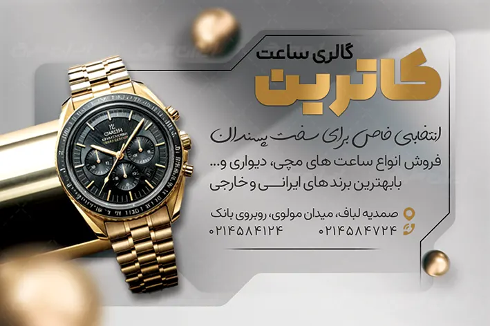 کارت ویزیت لایه باز گالری ساعت ،جهت تبلیغات این دسته از فروشگاه ها توسط تیم ایران طرح طراحی شده و در اختیار کاربران سایت قرار گرفته است.