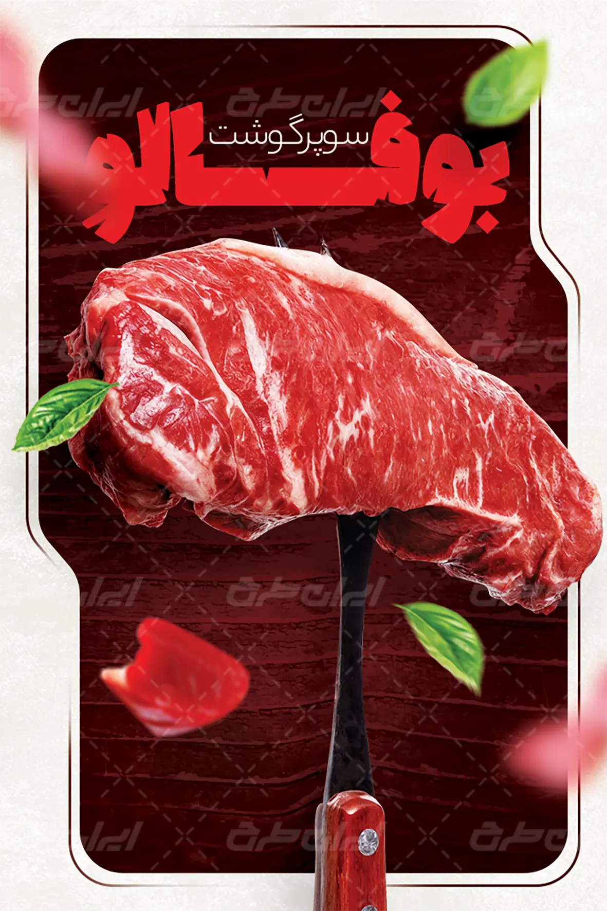 بک گراند کرم و قرمز، عکس باکیفیت گوشت قرمز، لیبل و شیپ های زیبا و کاربردی می باشد.