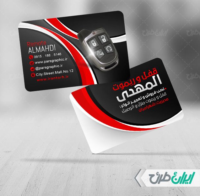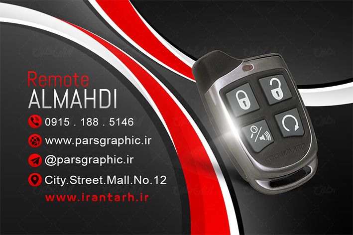 طرح کارت ویزیت سیستم حفاظتی اتومبیل شامل: تصویر ریموت ماشین ، بکگراند کاربردی، لیبل و شیپ های کاربردی می باشد که توسط طراحان پارس گرافیک در نرم افزار فتوشاپ طراحی شده است. به دلیل لایه باز بودن (قابل ویرایش توسط کاربران در نرم افزار فتوشاپ Adobe Photoshop) بودن و کیفیت بالای عناصر و المان های استفاده شده در طرح، می توانید از این طرح علاوه بر چاپ کارت ویزیت (به صورت افقی و دورو)، از سایر موارد تبلیغاتی از جمله استوری اینستاگرام و دیگر پلت فرم های فضای مجازی بهره ببرید.